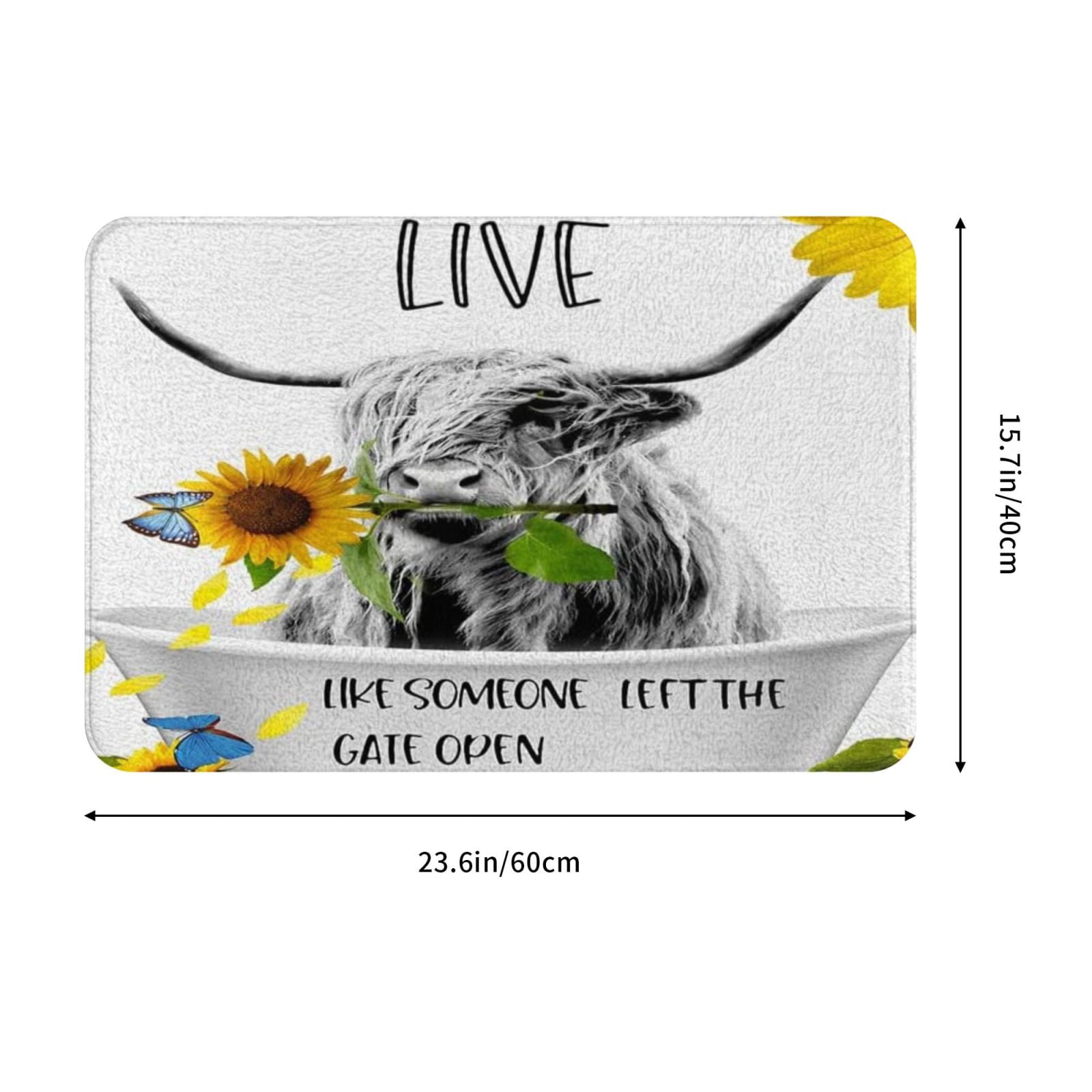 Highland Cow Bath Mat Sunflower Flower Funny Bull Butterfly Bathtub Farmhouse Creative Rug 16x24in Walmart Com